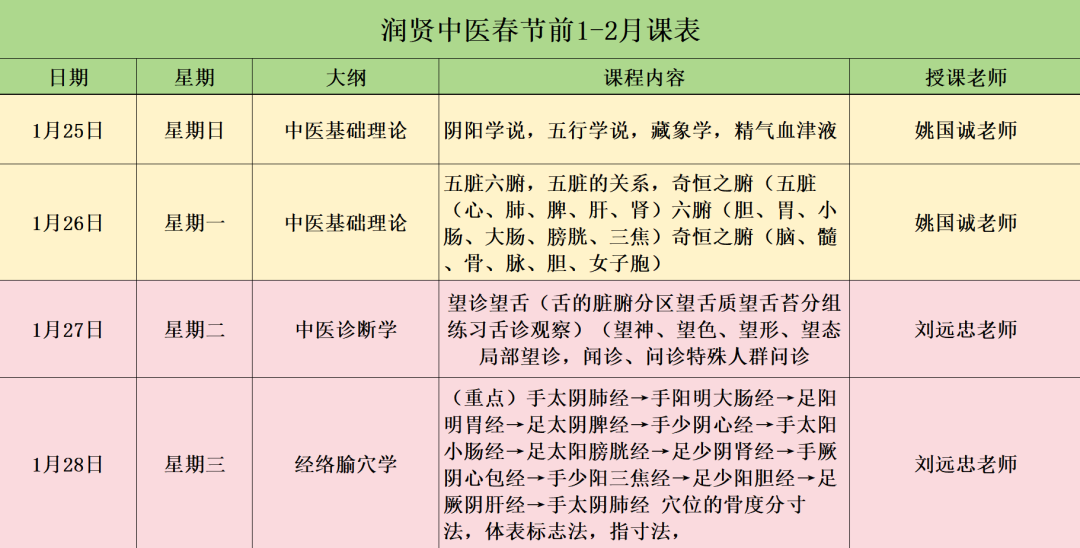 1-2月中医课表
