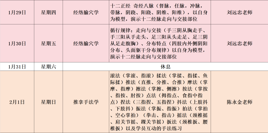 开课时间:1 月 25 日(周日)起,按课程表持续授课(课程表附后,可保存图片查看每日安排)