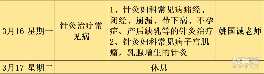 开课时间:3月4日,按课程表持续授课(课程表附后,可保存图片查看每日安排)