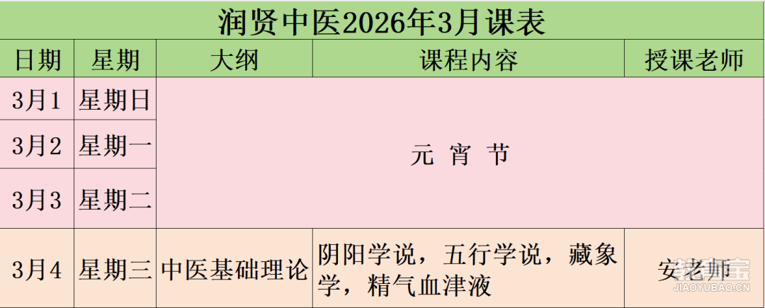 润贤中医学堂 26年3月课程表|回归中医本源,陪伴成长