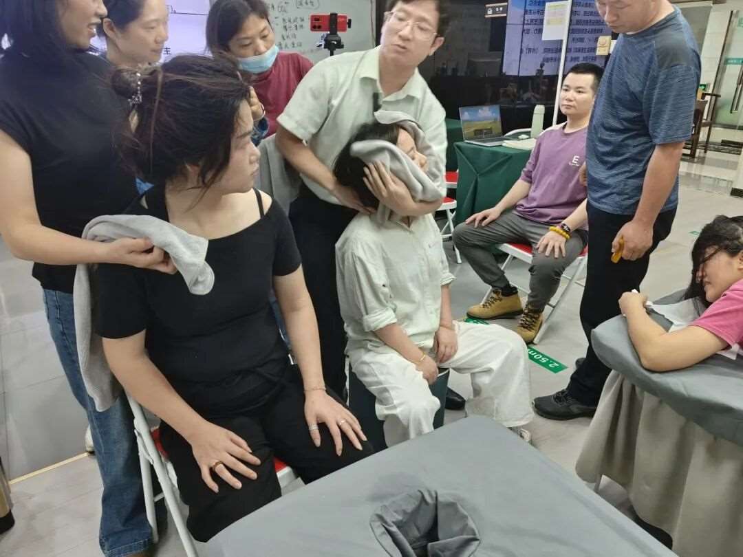 姚老师示范结束后,学员们立刻两两分组,开启沉浸式实操练习。课堂上没有旁观者,每个人都全身心投入,互相配合、反复操练。从最初的生疏试探,到后来的熟练精准,每一步成长都离不开姚老师的耐心指导。无论学员提出何种问题,姚老师都一一细致解答,一对一纠正手法错误,手把手带着学员感受寸劲发力的技巧,确保每一位学员都能掌握安全、有效的正骨手法,哪怕是零基础小白,也能快速上手、找准要领。
